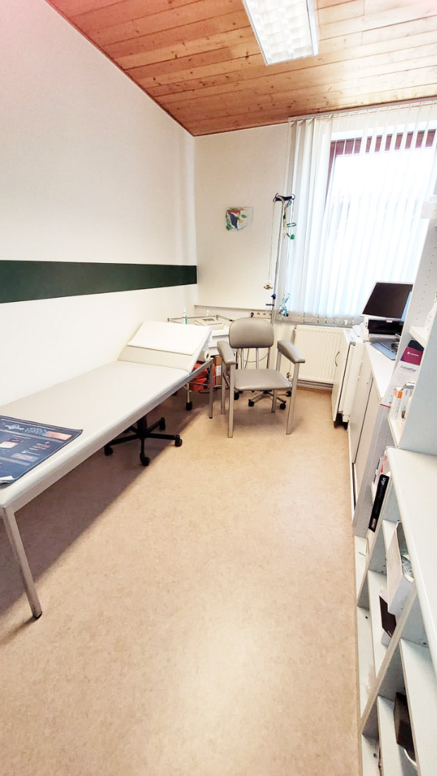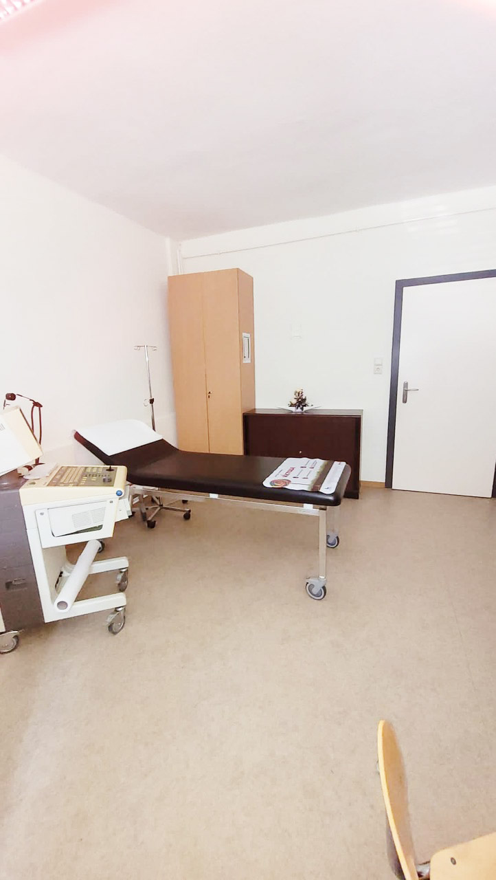Die Patienten werden hauptsächlich in der Praxis versorgt. Überschaubare Hausbesuche komplettieren die Aufgaben. 2 Bereitschaftsdienste pro Quartal. Als diagnostische Möglichkeiten stehen bei üblicher Grundausstattung Blutentnahmen, EKG, LZ-RR, moderne Wundversorgung, DMP-Programme, Check up-Untersuchungen, Infusionen und Injektionen, sowie alle üblichen Impfungen zur Verfügung. Eine US-Diagnostik wäre kurzfristig erweiterbar.
